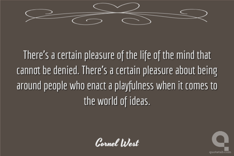 There's a certain pleasure of the life of the mind that cannot be denied. There's a certain pleasure about being around people who enact a playfulness when it comes to the world of ideas.