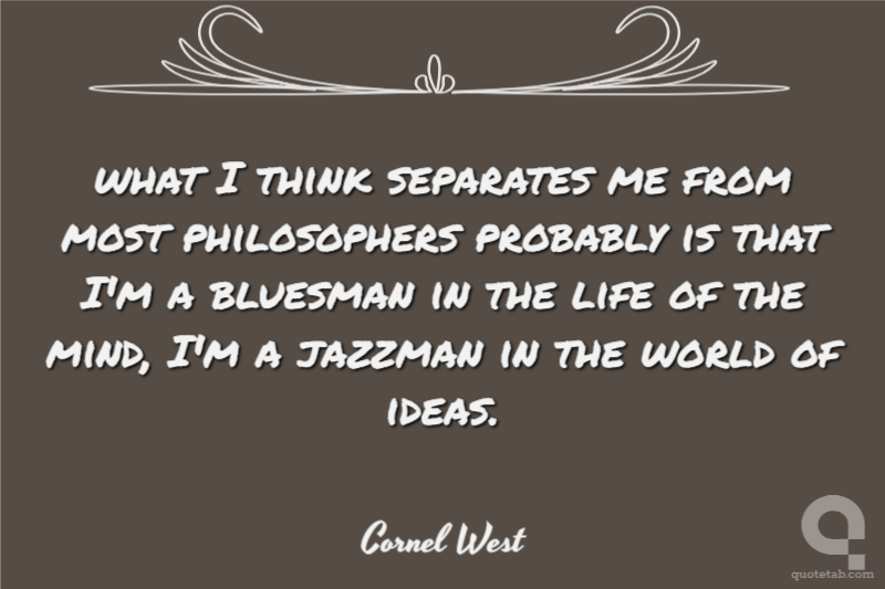 what I think separates me from most philosophers probably is that I'm a bluesman in the life of the mind, I'm a jazzman in the world of ideas.