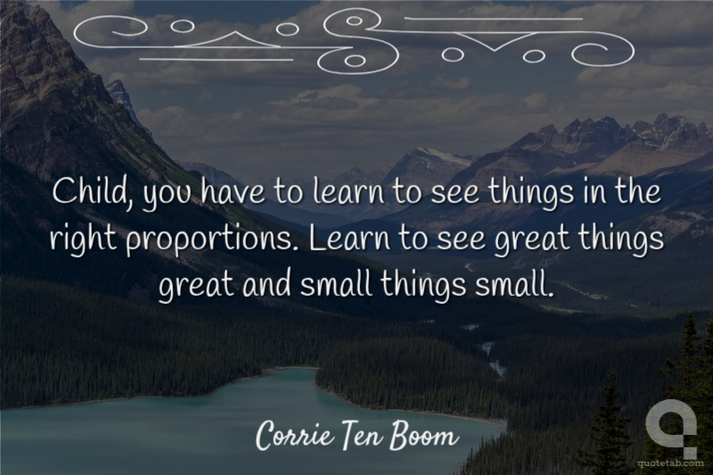 Child, you have to learn to see things in the right proportions. Learn to see great things great and small things small.