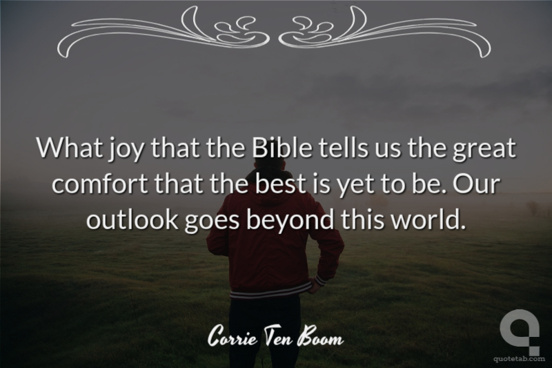 What joy that the Bible tells us the great comfort that the best is yet to be. Our outlook goes beyond this world.