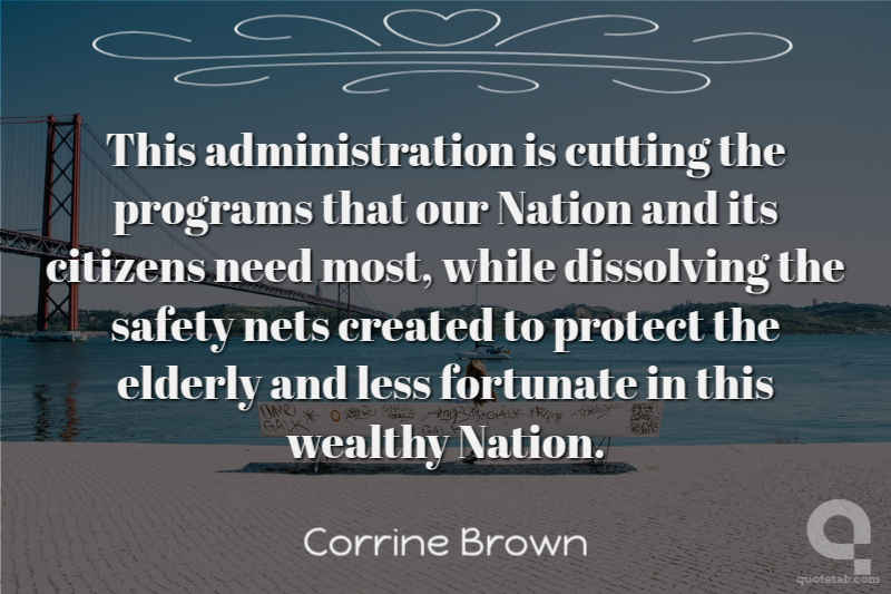 This administration is cutting the programs that our Nation and its citizens need most, while dissolving the safety nets created to protect the elderly and less fortunate in this wealthy Nation.