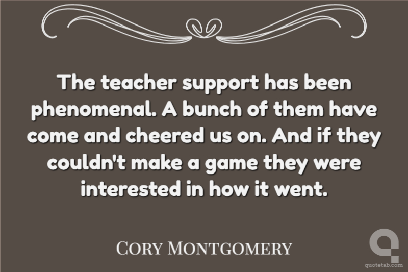 The teacher support has been phenomenal. A bunch of them have come and cheered us on. And if they couldn't make a game they were interested in how it went.