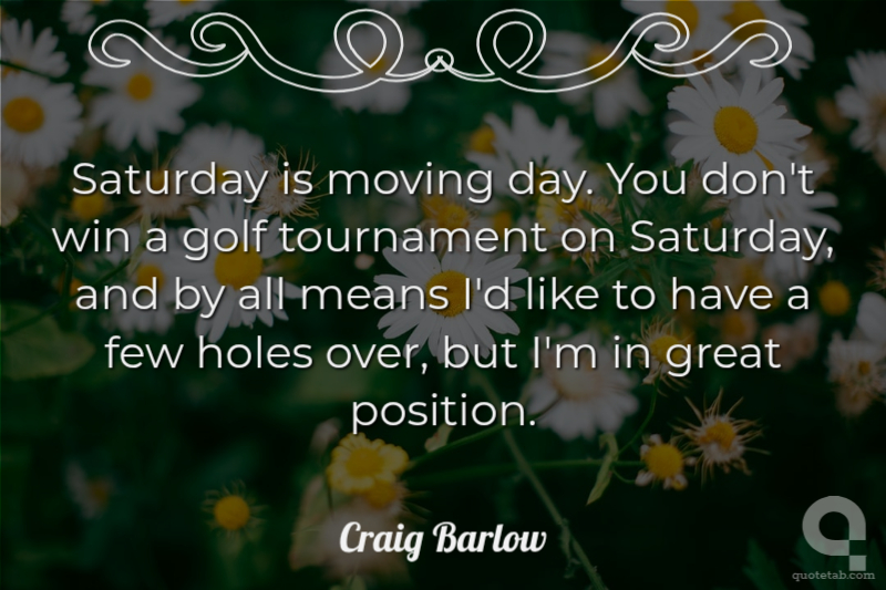 Saturday is moving day. You don't win a golf tournament on Saturday, and by all means I'd like to have a few holes over, but I'm in great position.