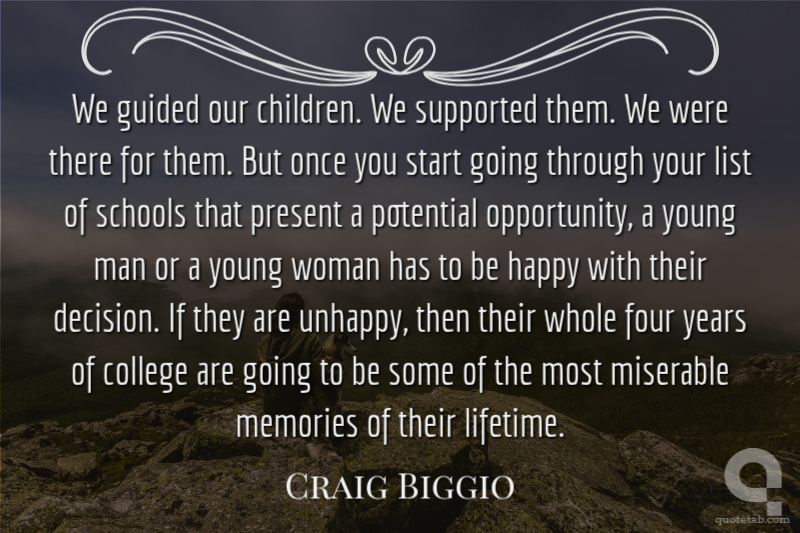 We guided our children. We supported them. We were there for them. But once you start going through your list of schools that present a potential opportunity, a young man or a young woman has to be happy with their decision. If they are unhappy, then their whole four years of college are going to be some of the most miserable memories of their lifetime.