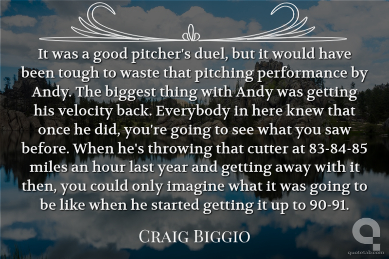 It was a good pitcher's duel, but it would have been tough to waste that pitching performance by Andy. The biggest thing with Andy was getting his velocity back. Everybody in here knew that once he did, you're going to see what you saw before. When he's throwing that cutter at 83-84-85 miles an hour last year and getting away with it then, you could only imagine what it was going to be like when he started getting it up to 90-91.