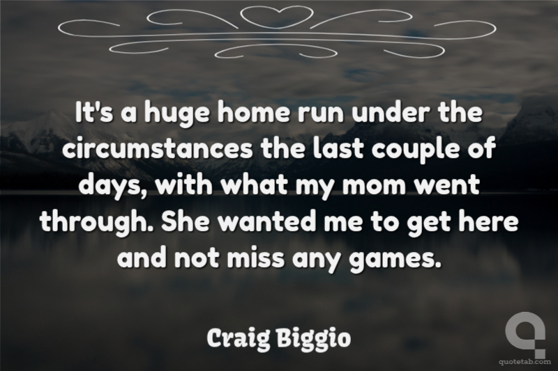 It's a huge home run under the circumstances the last couple of days, with what my mom went through. She wanted me to get here and not miss any games.