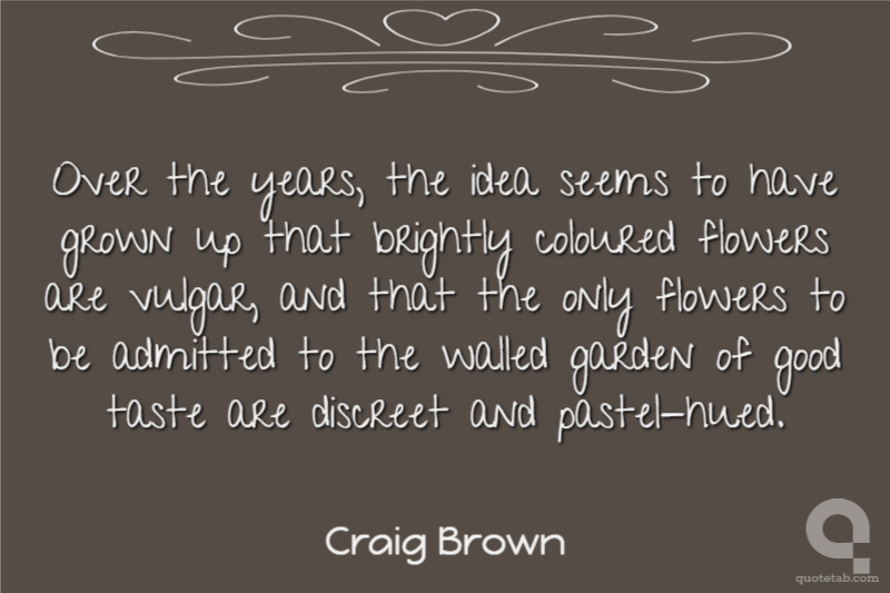 Over the years, the idea seems to have grown up that brightly coloured flowers are vulgar, and that the only flowers to be admitted to the walled garden of good taste are discreet and pastel-hued.