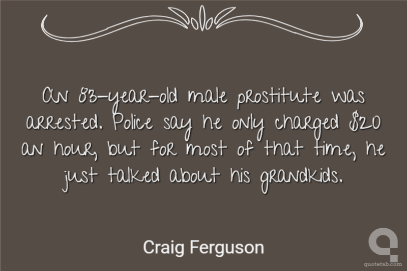 An 83-year-old male prostitute was arrested. Police say he only charged $20 an hour, but for most of that time, he just talked about his grandkids.