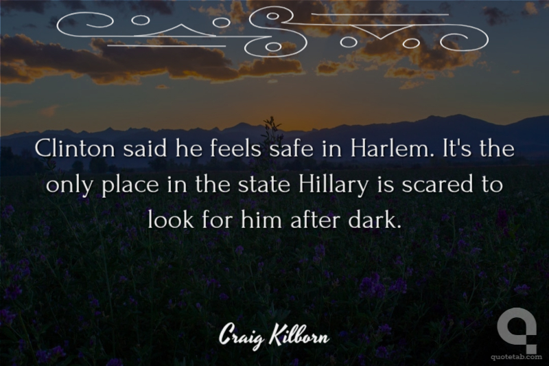 Clinton said he feels safe in Harlem. It's the only place in the state Hillary is scared to look for him after dark.