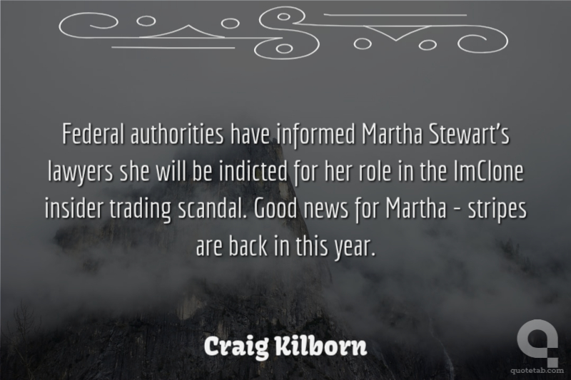 Federal authorities have informed Martha Stewart's lawyers she will be indicted for her role in the ImClone insider trading scandal. Good news for Martha - stripes are back in this year.