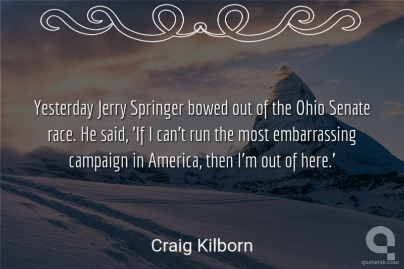 Yesterday Jerry Springer bowed out of the Ohio Senate race. He said, 'If I can't run the most embarrassing campaign in America, then I'm out of here.'