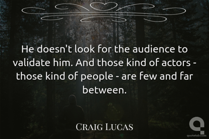 He doesn't look for the audience to validate him. And those kind of actors - those kind of people - are few and far between.