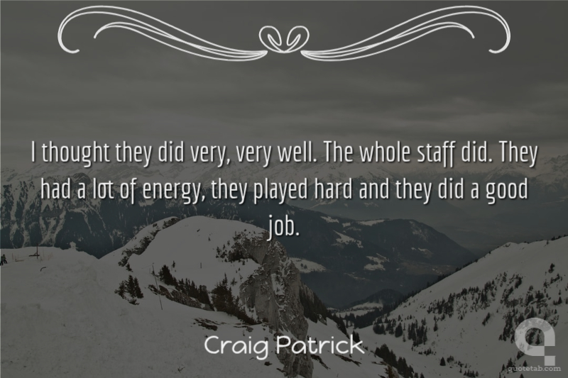I thought they did very, very well. The whole staff did. They had a lot of energy, they played hard and they did a good job.