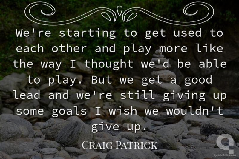 We're starting to get used to each other and play more like the way I thought we'd be able to play. But we get a good lead and we're still giving up some goals I wish we wouldn't give up.