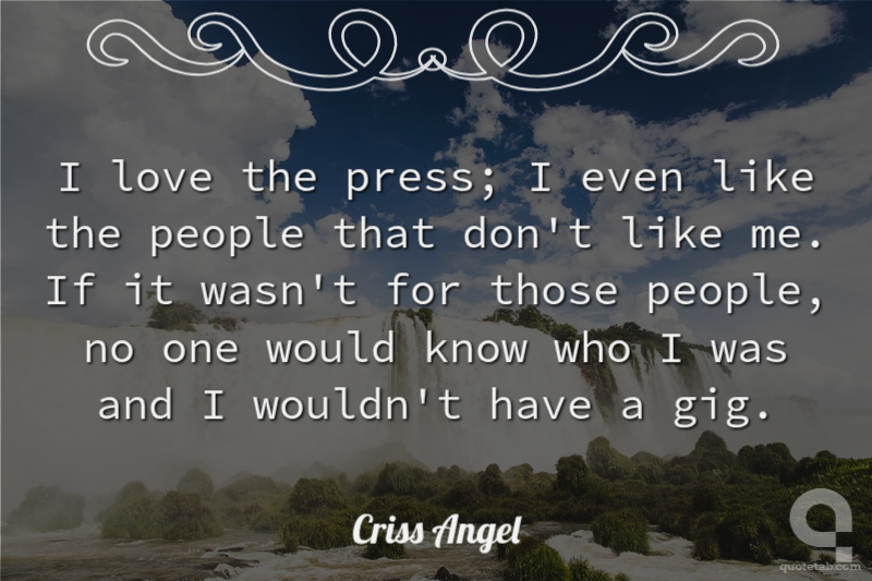 I love the press; I even like the people that don't like me. If it wasn't for those people, no one would know who I was and I wouldn't have a gig.