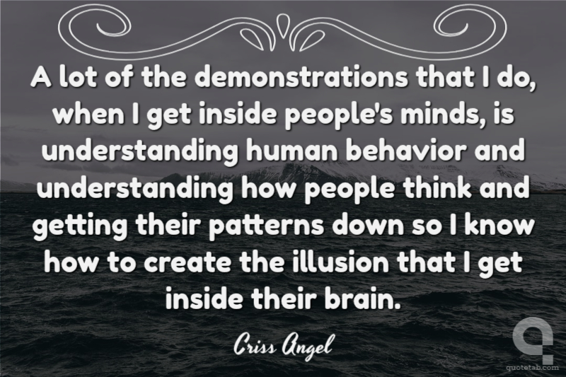 A lot of the demonstrations that I do, when I get inside people's minds, is understanding human behavior and understanding how people think and getting their patterns down so I know how to create the illusion that I get inside their brain.