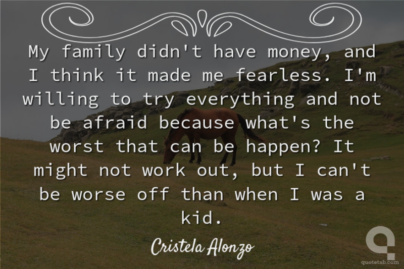 My family didn't have money, and I think it made me fearless. I'm willing to try everything and not be afraid because what's the worst that can be happen? It might not work out, but I can't be worse off than when I was a kid.