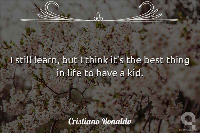 I still learn, but I think it's the best thing in life to have a kid.