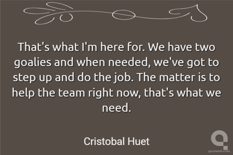 We have two goalies, and when needed, we've got to step up and do the job. The matter is to help the team right now.