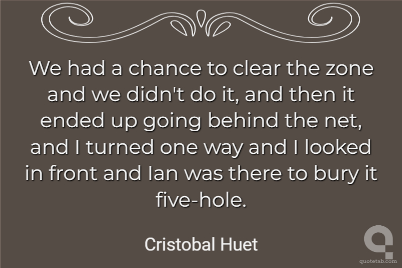 We had a chance to clear the zone and we didn't do it, and then it ended up going behind the net, and I turned one way and I looked in front and Ian was there to bury it five-hole.