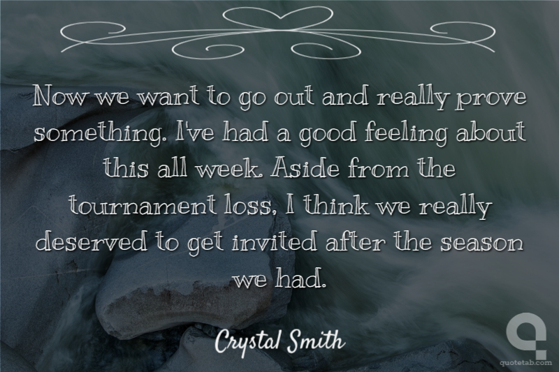 Now we want to go out and really prove something. I've had a good feeling about this all week. Aside from the tournament loss, I think we really deserved to get invited after the season we had.