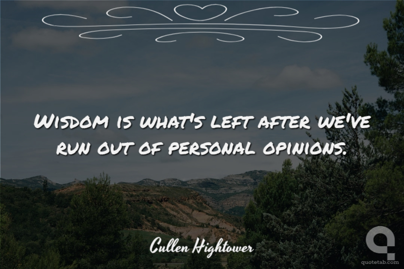Wisdom is what's left after we've run out of personal opinions.
