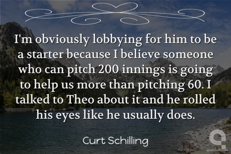 I'm obviously lobbying for him to be a starter because I believe someone who can pitch 200 innings is going to help us more than pitching 60. I talked to Theo about it and he rolled his eyes like he usually does.