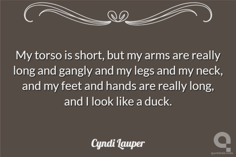 My torso is short, but my arms are really long and gangly and my legs and my neck, and my feet and hands are really long, and I look like a duck.