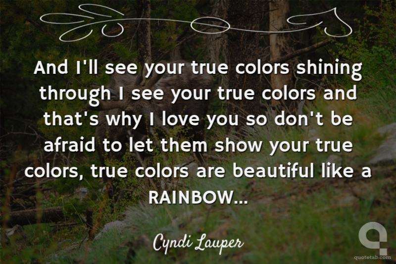 And I'll see your true colors shining through I see your true colors and that's why I love you so don't be afraid to let them show your true colors, true colors are beautiful like a RAINBOW...