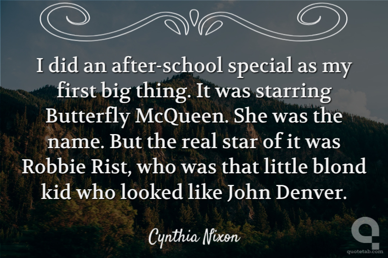 I did an after-school special as my first big thing. It was starring Butterfly McQueen. She was the name. But the real star of it was Robbie Rist, who was that little blond kid who looked like John Denver.
