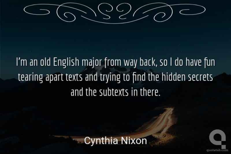 I do tend to be an analyzer. I'm an old English major from way back, so I do have fun tearing apart texts and trying to find the hidden secrets and the subtexts in there.