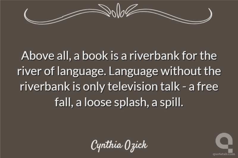 Above all, a book is a riverbank for the river of language. Language without the riverbank is only television talk - a free fall, a loose splash, a spill.