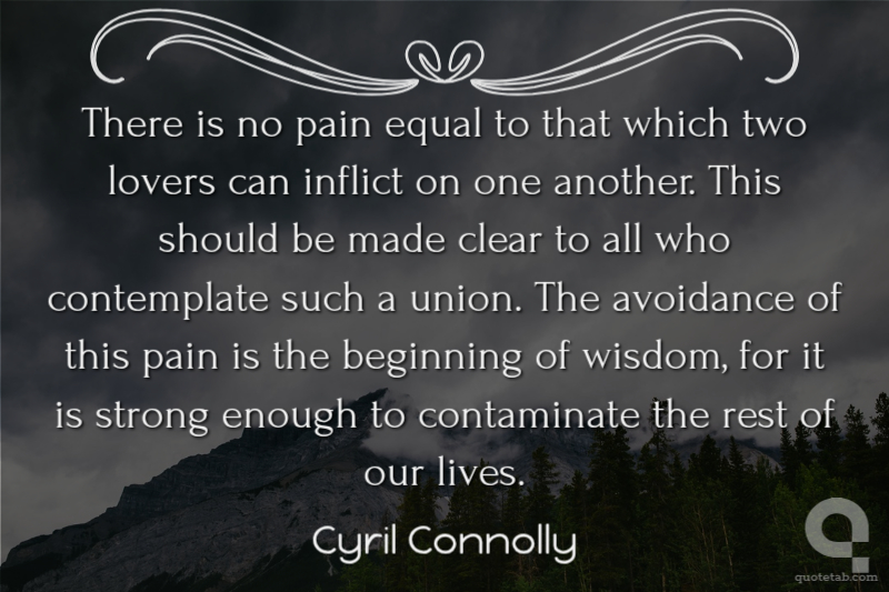 There is no pain equal to that which two lovers can inflict on one another. This should be made clear to all who contemplate such a union. The avoidance of this pain is the beginning of wisdom, for it is strong enough to contaminate the rest of our lives.