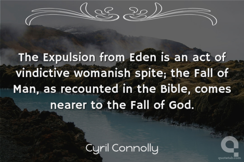 The Expulsion from Eden is an act of vindictive womanish spite; the Fall of Man, as recounted in the Bible, comes nearer to the Fall of God.
