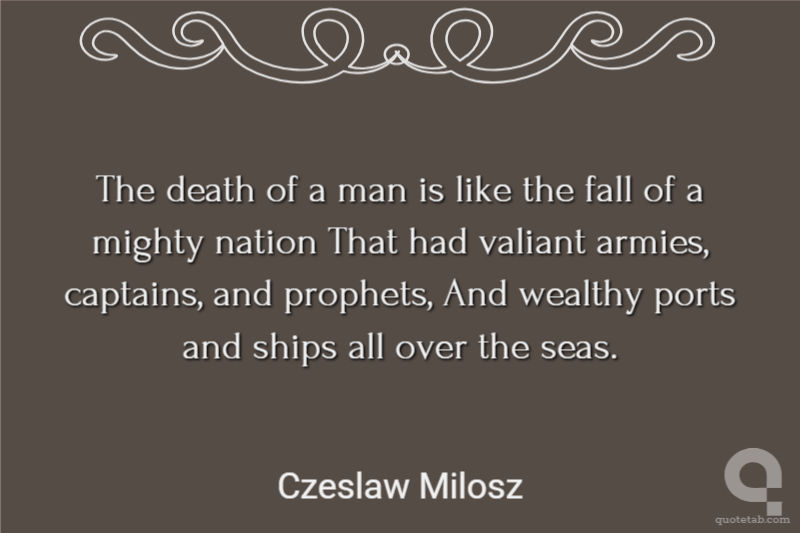 The death of a man is like the fall of a mighty nation That had valiant armies, captains, and prophets, And wealthy ports and ships all over the seas.
