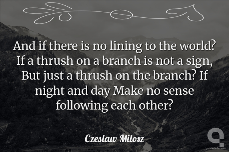 And if there is no lining to the world? If a thrush on a branch is not a sign, But just a thrush on the branch? If night and day Make no sense following each other?