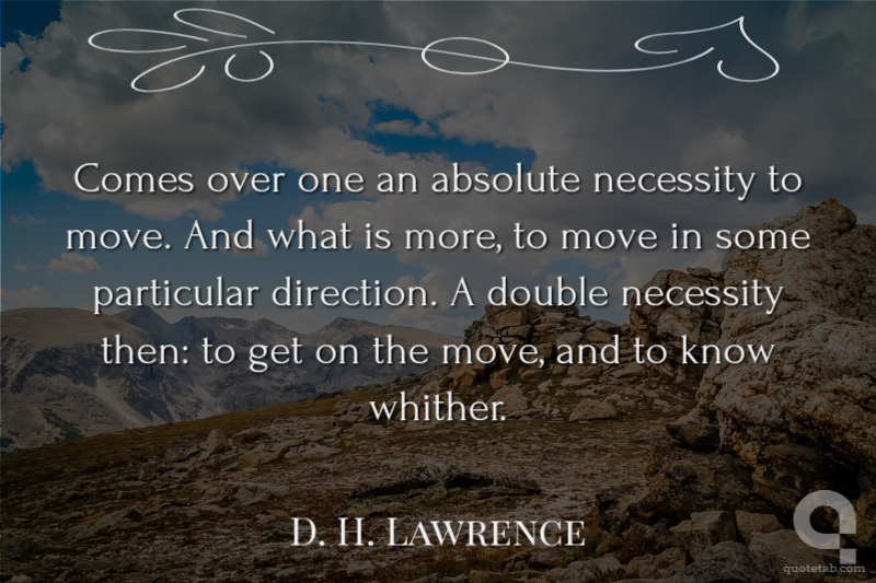 Comes over one an absolute necessity to move. And what is more, to move in some particular direction. A double necessity then: to get on the move, and to know whither.