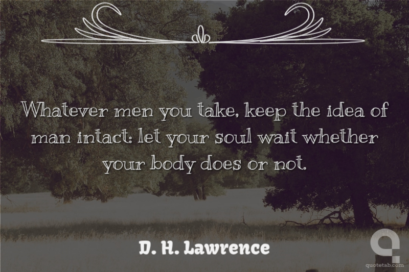 The chief thing about a woman - who is much of a woman - is that in the long run she is not to be had... She is not to be caught by any of the catch-words, love, beauty, honor, duty, worth, work, salvation - none of them - not in the long run. In the long run she only says Am I satisfied, or is there some beastly dissatisfaction gnawing and gnawing inside me. And if there is some dissatisfaction, it is physical, at least as much as psychic, sex as much as soul.