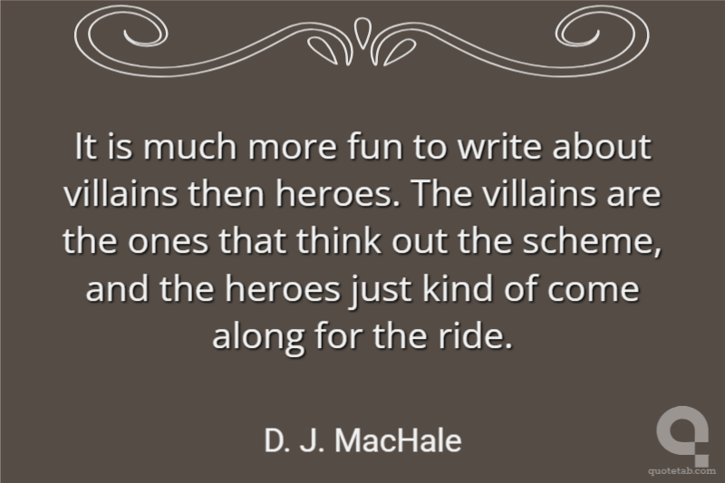It is much more fun to write about villains then heroes. The villains are the ones that think out the scheme, and the heroes just kind of come along for the ride.