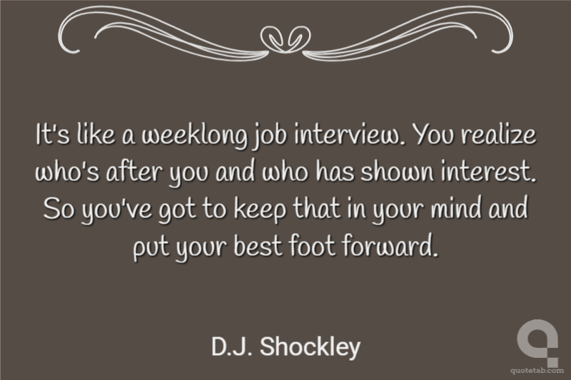 It's like a weeklong job interview. You realize who's after you and who has shown interest. So you've got to keep that in your mind and put your best foot forward.