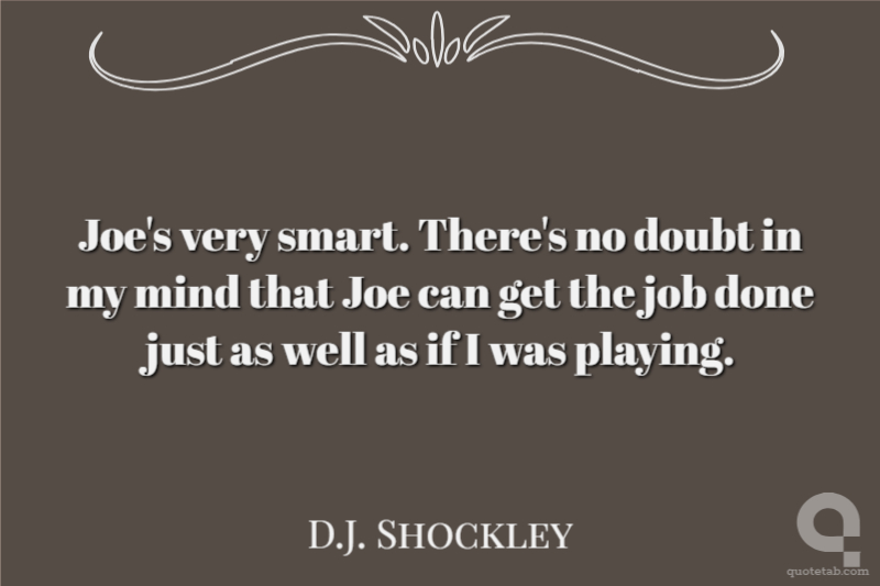 Joe's very smart. There's no doubt in my mind that Joe can get the job done just as well as if I was playing.