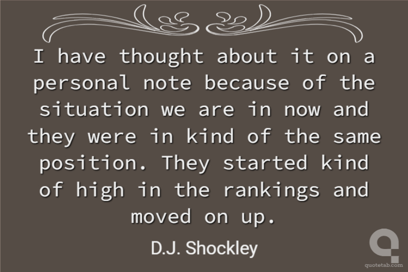 I have thought about it on a personal note because of the situation we are in now and they were in kind of the same position. They started kind of high in the rankings and moved on up.