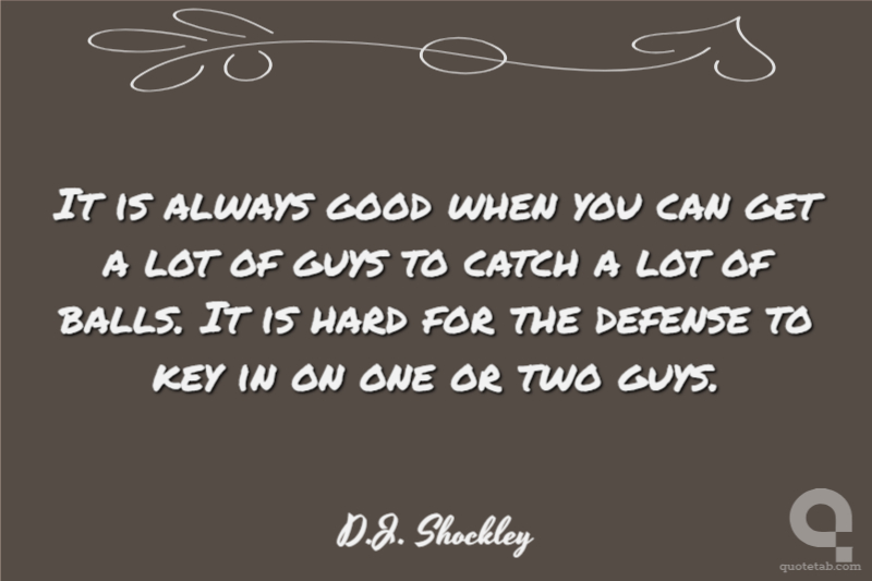 It is always good when you can get a lot of guys to catch a lot of balls. It is hard for the defense to key in on one or two guys.