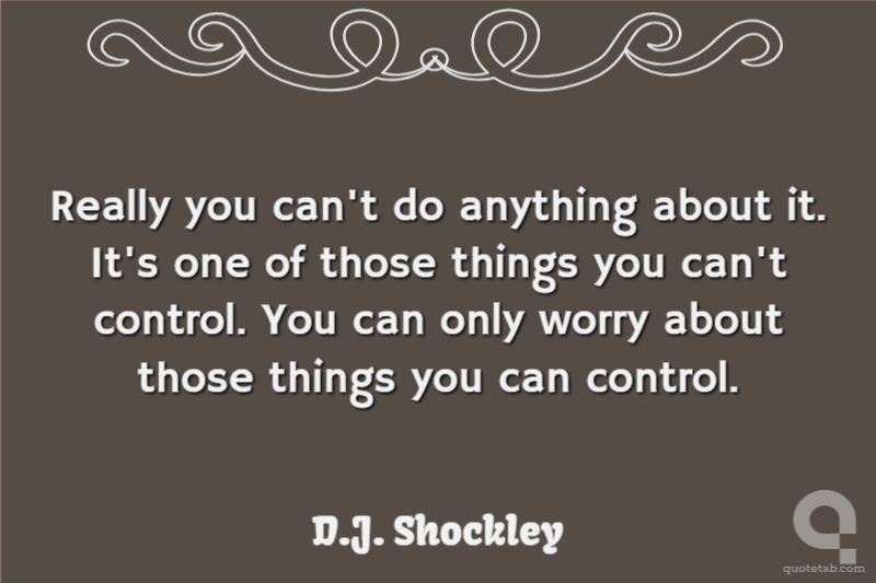 Really you can't do anything about it. It's one of those things you can't control. You can only worry about those things you can control.