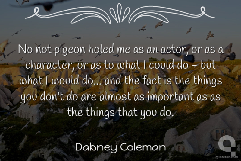 No not pigeon holed me as an actor, or as a character, or as to what I could do - but what I would do... and the fact is the things you don't do are almost as important as as the things that you do.