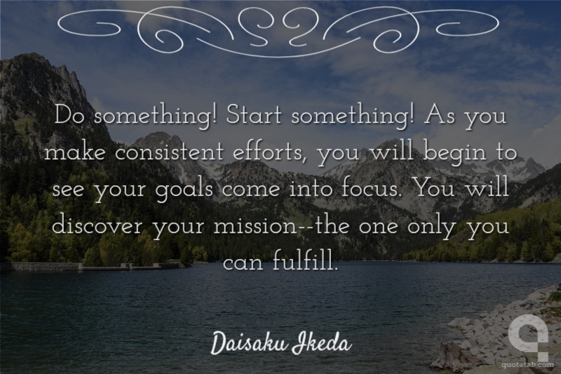 Do something! Start something! As you make consistent efforts, you will begin to see your goals come into focus. You will discover your mission--the one only you can fulfill.