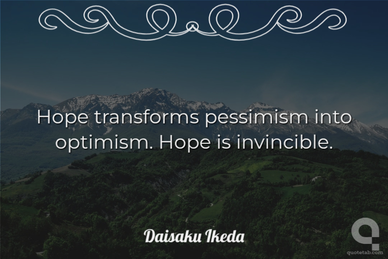 Hope transforms pessimism into optimism. Hope is invincible.