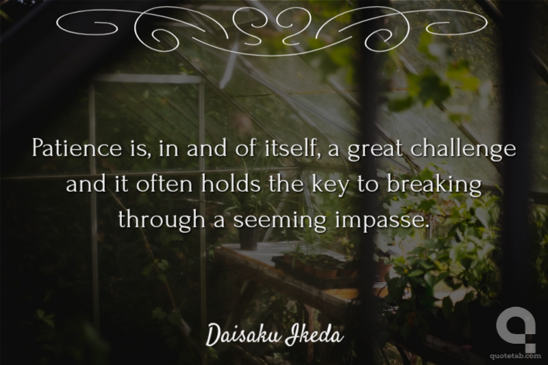 Patience is, in and of itself, a great challenge and it often holds the key to breaking through a seeming impasse.