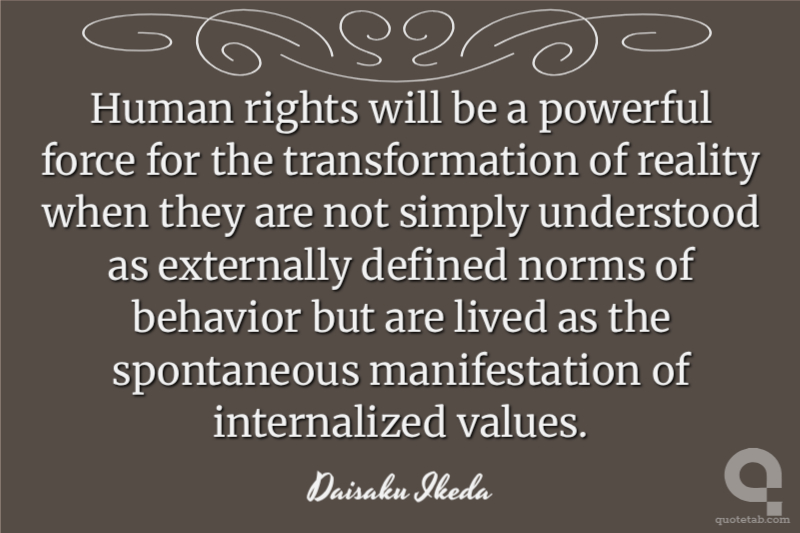 Human rights will be a powerful force for the transformation of reality when they are not simply understood as externally defined norms of behavior but are lived as the spontaneous manifestation of internalized values.