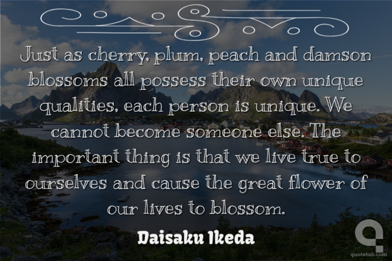 Just as cherry, plum, peach and damson blossoms all possess their own unique qualities, each person is unique. We cannot become someone else. The important thing is that we live true to ourselves and cause the great flower of our lives to blossom.